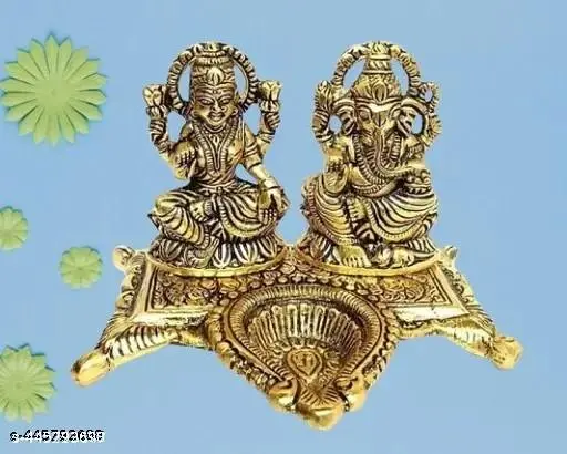 Metal Lord Statue with Diya Stand | Puja | God murti for Home décor | puja Room | Diwali Gift | Table décor | Gifted Idol (13 cm)