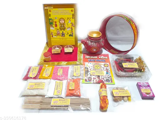 Karwa Chauth pooja samagri Kit | Karwa chauth puja | with Karwa and Channi / Chalni | Karwa choth puja | pooja Kit | vrat katha | choth pooja | fancy design