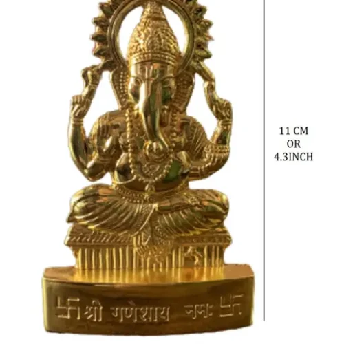 LAXMI AND GANESHJI AND SARASWATI MAA delightful Statue/Idol/ Decorative Showpiece – 8 cm (Brass, Gold)