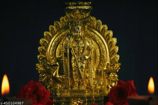 GOLDEN MURUGAN STATUE-RELIGIOUS IDOL-KARTIKEYA STATUE