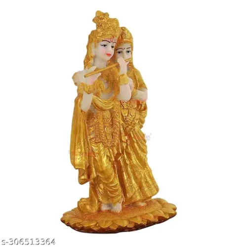 Gold Plated God of Love Radha Krishna Idol Statue Showpiece – Home Living Room Decoration Item – Gifts for Family & Friends Corporate Gifts for Employees, Resin, Multicolour