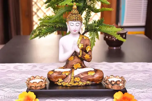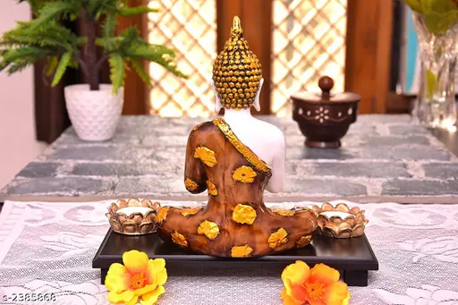 Buddha Showpiece With Wooden Tray and 2 t-light candle & holder | Buddha Statue | Buddha Idol | home decor , Bedroom, Office, Pooja room Gautam Buddha Murti, Decorative Items, Gifts For Wedding, House warming, birthday Vastu,good luck buddha murti.size-21x11x20 cm