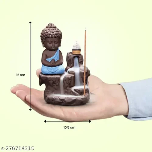 Baby Monk Buddha Smoke Buddha Smoke Fountain Cone Incense Holder with 10 Incense Sticks FREE – BLUE