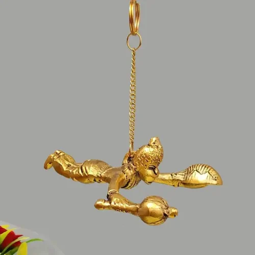 Hanumaan ji car/key hanging/Bajrangbali. Metal Statue car dashboard Decorative Showpiece – 15 cm (Metal, Gold)
