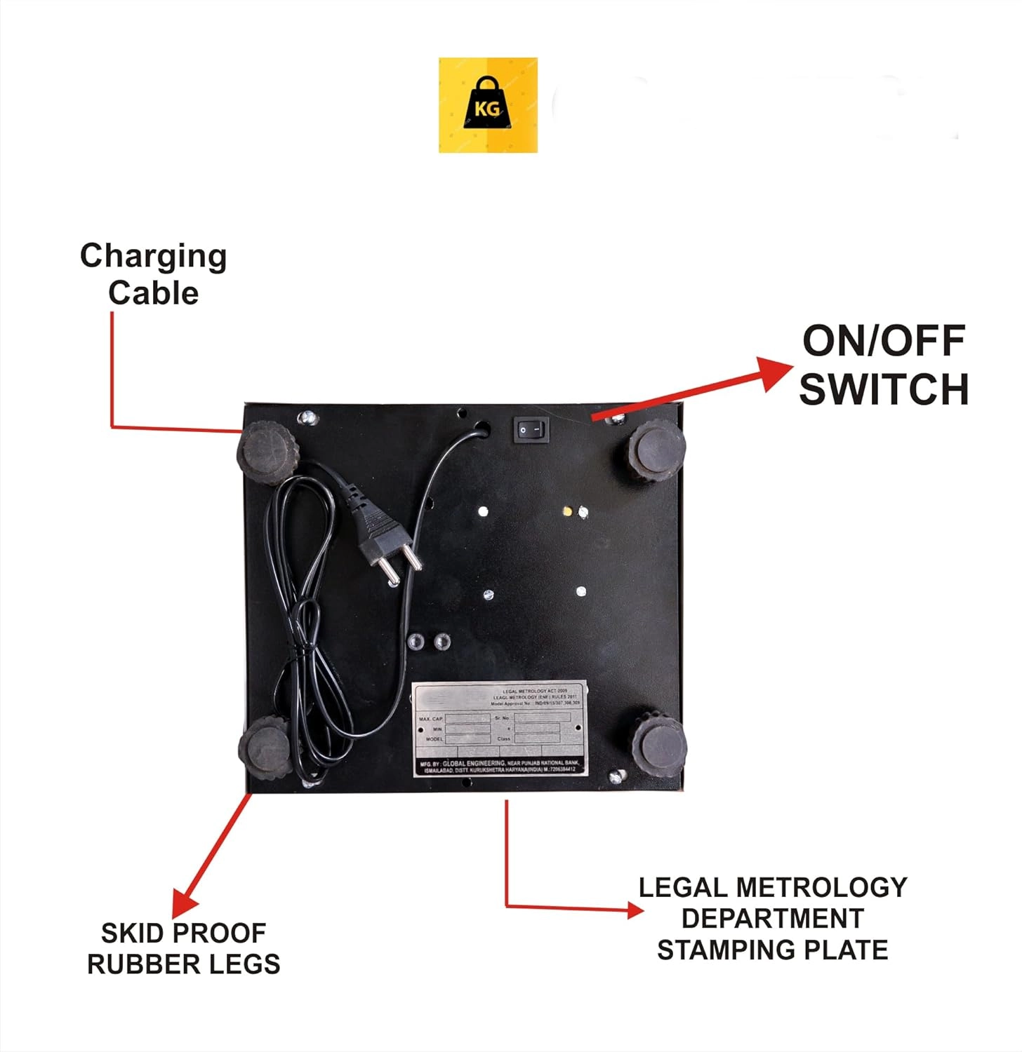 30Kg Rechargeable High-Accuracy Counter Weight Machine with Stainless Steel Top for Shop, Market, Home, Restaurant, Vegetable, Kitchen Weighing Scale