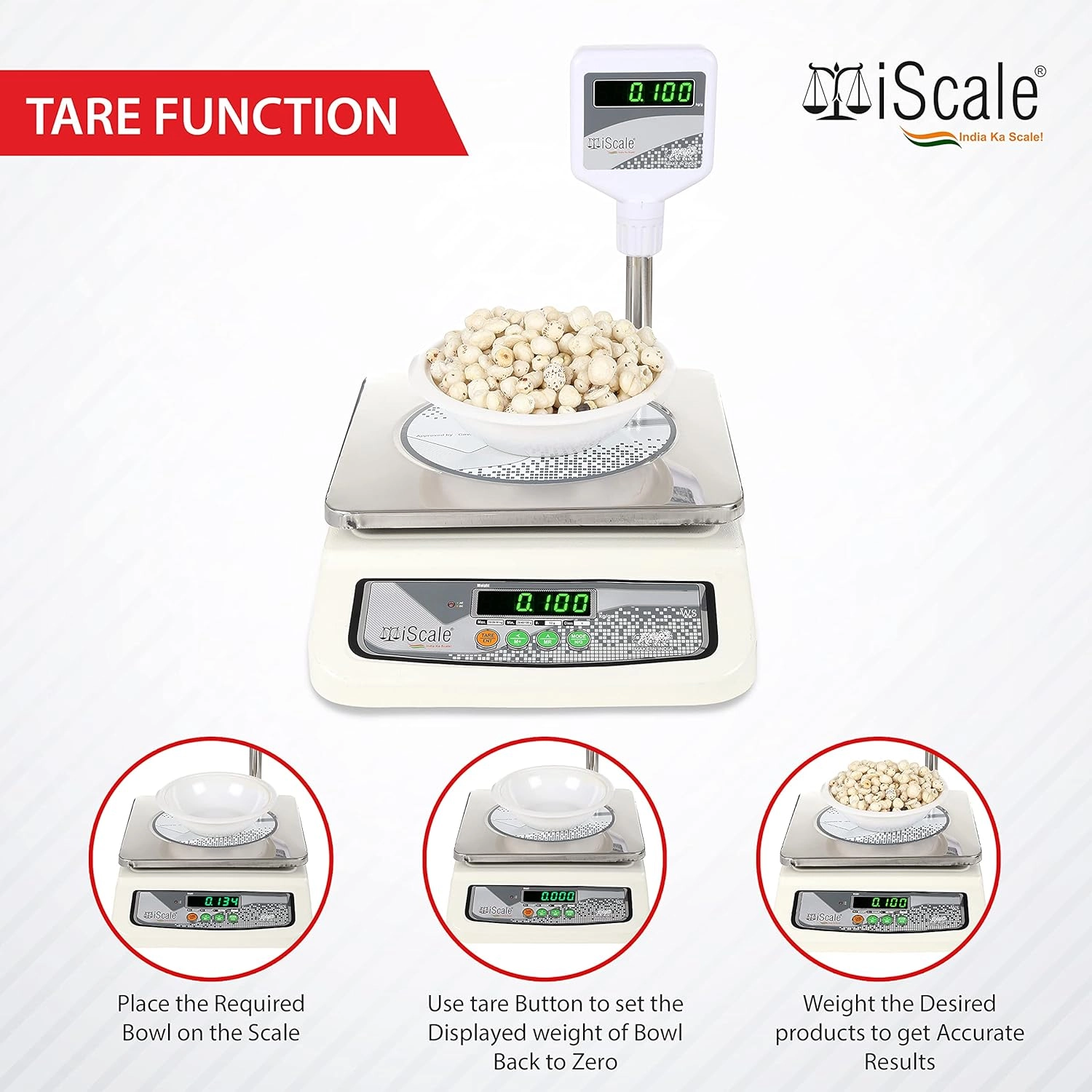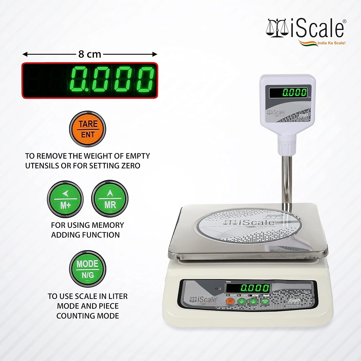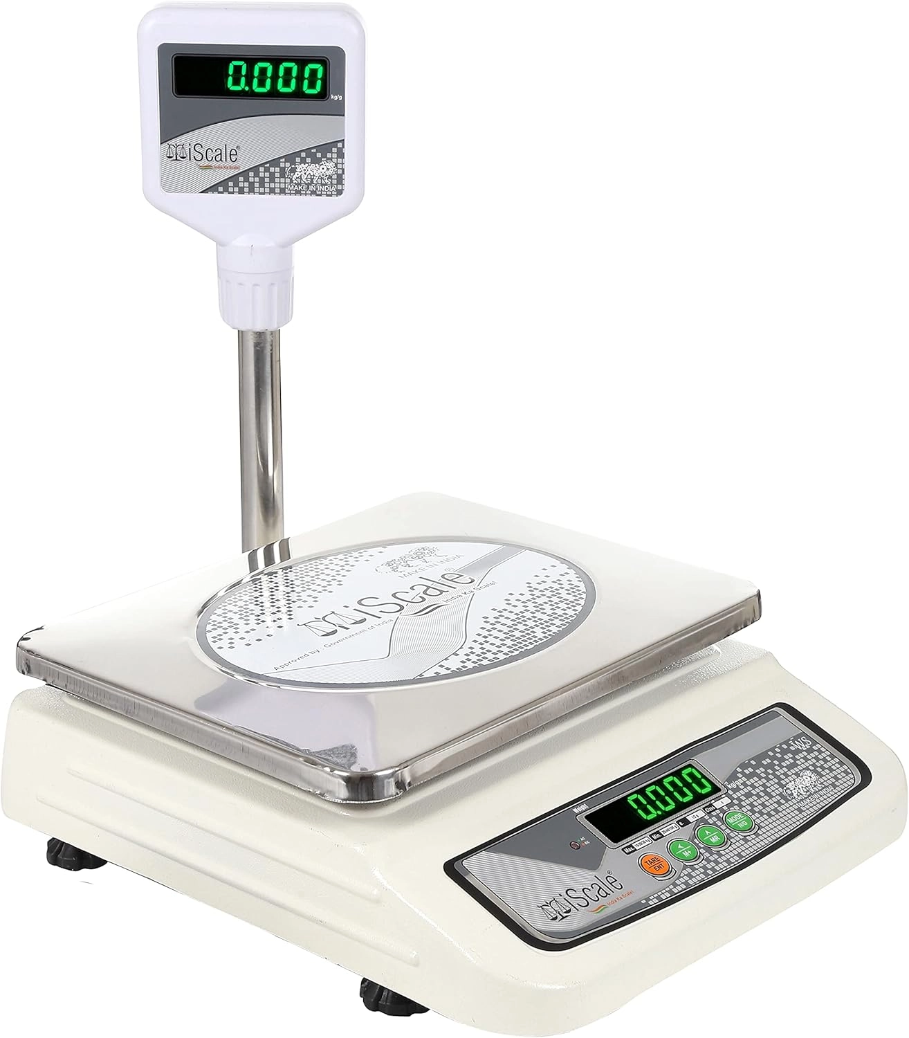 iScale i-05: 30kg Digital Chargeable Weighing Machine, Front and Pole Display, Stainless Steel Pan – Ideal for Shop with Certificate