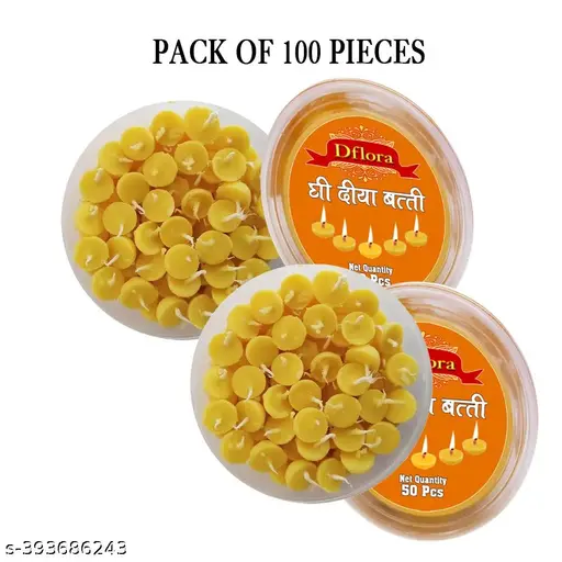 Dflora Cow Ghee Batti for Puja Handmade Pooja Jyot Batti for Aarti and Special Occasions, High Quality Puja Batti - 50p X 2 Total 100pcs Combo Set