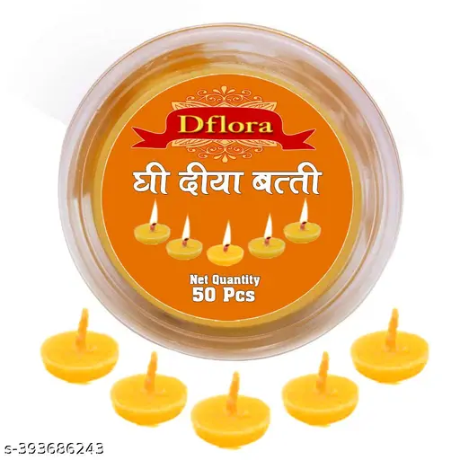 Dflora Get Ready to Use Ghee Diya Batti For Home & Office Puja. Added Cotton Batti with Cow Ghee, Burning Time 15 Minutes. The Dflora Ghee Dia Wicks Are Perfect for Daily Puja/pooja & Prayers. 50pc X 2