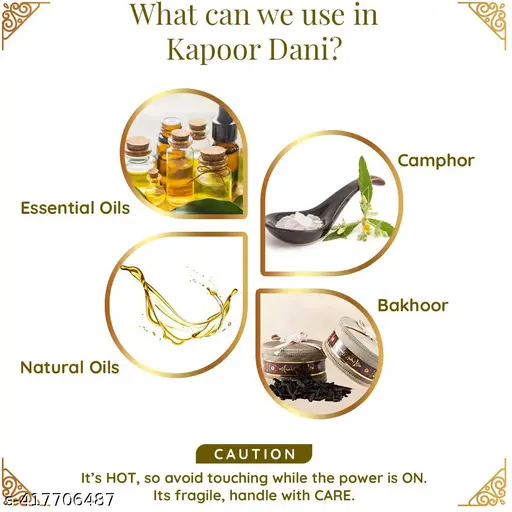 Easy to use Produce less smoke very easy for cleaning, Heavy Duty Coil. Insert the plug into the socket and switch on the button for few minutes and put some Bakhoor / Dhoop / Incense on the top plate & Enjoy. To Long lasting use Kindly Switch off the kapur dani once kapur tablet finished. Purify The Surrounding And Interior Of Your Home By Diffusing A Product Of Your Choice.