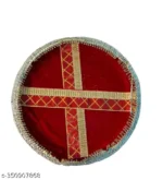 Beautiful Red Velvet with bordered gota Pooja Thali Set includes thali, Chhalni and Lota.