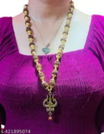 Name : Pack Of 1 Krishna MArtOm TRishul Rudraksha Mala With Panchmukhi Original Rudraksha Gold plated Mala