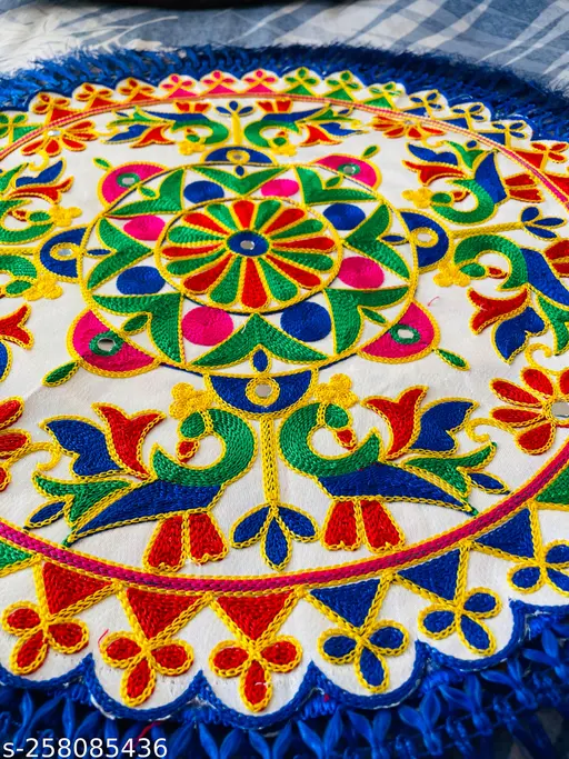Name : Round Pooja Thali Rumal, Wedding Beautiful Hand Work Thali Rumal (18.5 Inch)