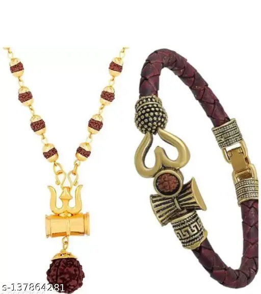 Name : Rudraksh damru trishul mala with damru leather bracelet combo