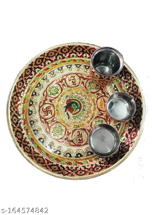 Name : Shrisha Creation handicraft stainless steal meenakari pooja thali, aarti thali & karva chauth thali
