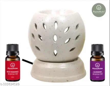 Handcrafted Ceramic Electric Aroma Diffuser Oil Burner| Aroma Oil Diffuser for Home with Aroma Oils, Cylinder Shape, White Color (Lavender & Rose 10 ml Each)