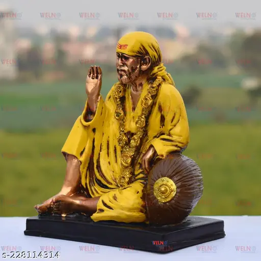 Yellow Sai Baba IdolGod Gift Statue murti for Home Decor Office Vastu Fenshui Spiritual Home Temple Workplace Home Decorative showpiece – 17 cm